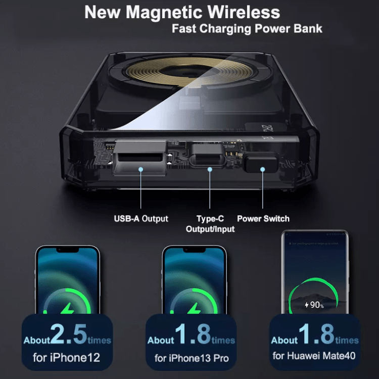 Magnetische 5000mAh Powerbank 100% vollständig transparente Power Banks (15W) Kleine mobile schnell aufladende tragbare drahtlose Ladegeräte magnetische transparente Power Bank